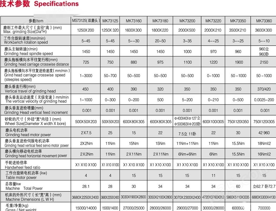 MK73360龙门数控卧轴圆台平面磨床技术参数: