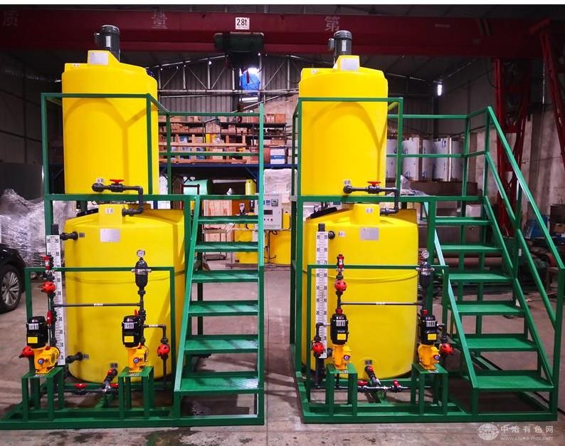 4)药剂投加量便宇调节。加药装置所有设备、管道及阀门均集中安装在钢支架上,具有结构紧凑、占地面积小和易于运输安装等优点。