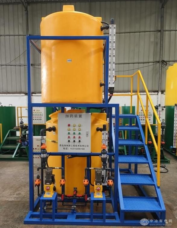 4)药剂投加量便宇调节。加药装置所有设备、管道及阀门均集中安装在钢支架上,具有结构紧凑、占地面积小和易于运输安装等优点。