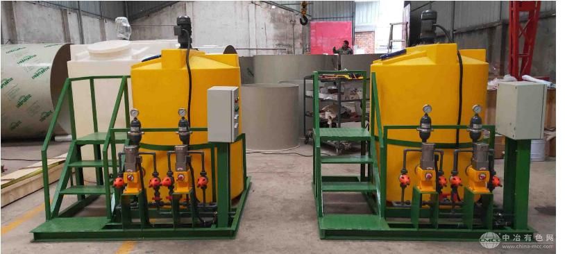 4)药剂投加量便宇调节。加药装置所有设备、管道及阀门均集中安装在钢支架上,具有结构紧凑、占地面积小和易于运输安装等优点。