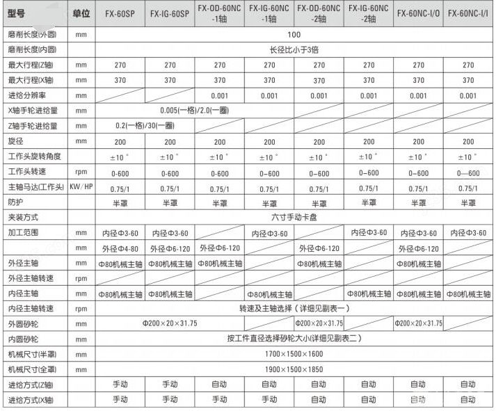 FX-60系列数控复合磨床采用法那科数控系统,配以相应的伺服进刀马达,全数字控制,实现自动修砂、自动补偿功能。