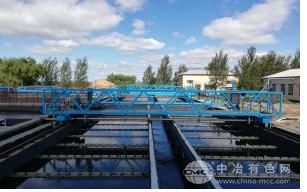 抬耙刮泥机用于污水处理厂平流沉淀池,将沉降在池底的污泥刮集至集泥槽,并将池面的浮渣撇向集渣槽。