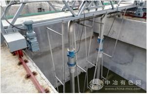 抬耙刮泥机用于污水处理厂平流沉淀池,将沉降在池底的污泥刮集至集泥槽,并将池面的浮渣撇向集渣槽。