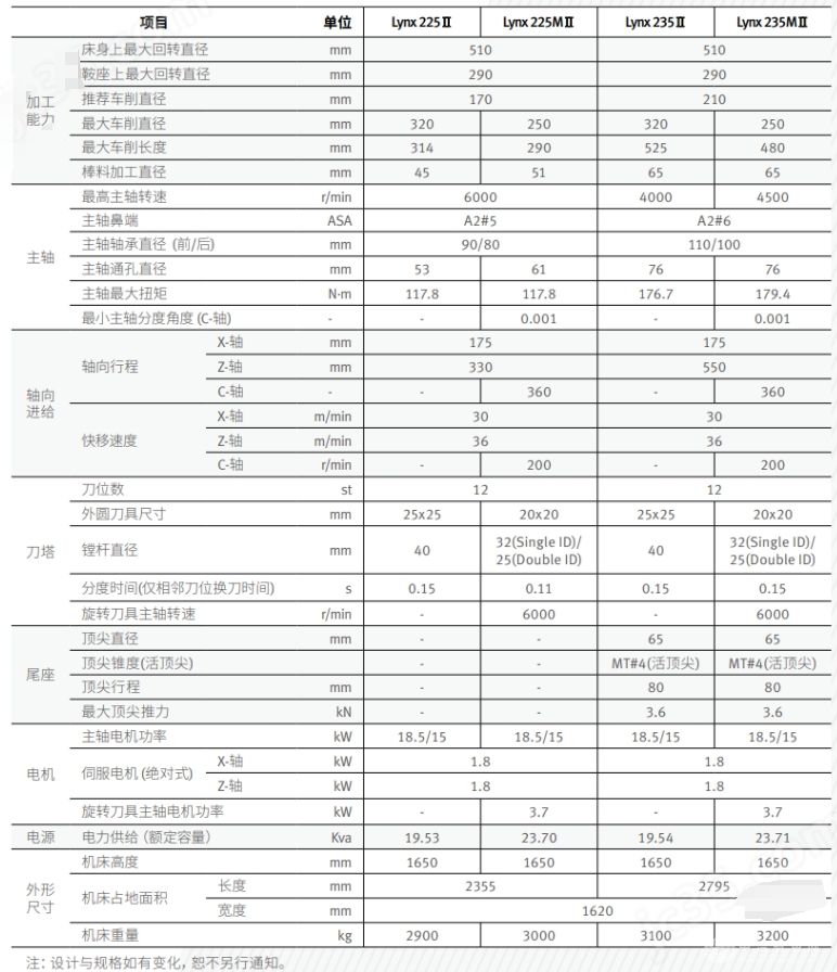 LynxⅡ系列是作为凑型卧式车削中心,拥有高刚性和稳定性的床身结构,配备18.5kW大扭矩主轴,从高精加工到大批量生产,可满足不同客户的生产需求.配备高性能主轴,主轴轴承为P4级精度,用永jiu润滑脂润滑。同时Lynx II系列主轴电机功率和主轴扭矩都大幅提高,有效提高了加工精度和效率,满足客户多种加工需求。