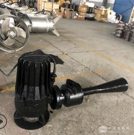 通过潜水泵产生的水流经过喷嘴形成高速水流,在喷嘴周围形成负压吸入空气,经混合室与水流混合,在喇叭形的扩散管内产生水气混合流,高速喷射而出,夹带许多气泡的水流在较大面积和深度的水域内涡旋搅拌,完成曝气,并且其轴功率不随潜没深度的变化而变化,进气量可以调节。正因为如此,射流式曝气机可以在水位变化较大的池中应用。