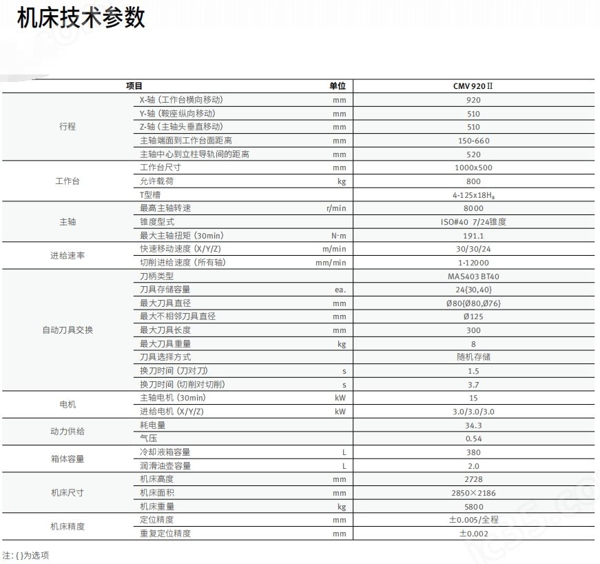 主轴锥孔ISO#40 7/24锥度最大行程X轴:920mm,Y轴:510mm,Z轴:510mm