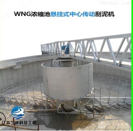 ZBXN 型系列吸泥机如图 1 所示为周边传动虹吸式,由兼作输泥槽的主梁、吸泥管系、虹吸抽空系统、 中心泥罐、中心回转轴承、驱动装置、撇渣装置、集电器、控制柜等构成。 主梁由置于周边的驱动装置带动,绕池中心轴线旋转,沉积在池底的污泥由刮泥板刮集至各吸 泥口,在液位差的作用下,污泥经吸泥口,输泥槽、虹吸管、中心泥罐、中心排泥管排至污泥坑。每个吸泥 管上端设有调节器,以调节各吸泥管的流量分配。同时,液面上的浮渣向随主梁旋转的撇渣板和周边浮渣挡 板形成的渐缩区域内集中,直至其封闭边—刮渣摆臂。当摆臂抵达集渣斗时,由摆臂上的刮渣板刮至集泥斗。