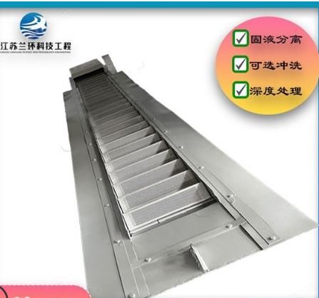 阶梯式格栅主要由动格栅、静格栅、动力及传动装置、 电气控制系统四成,动、静格栅板为锯齿形状交替布置,通 过传动机构驱动动格栅做偏心回转式运动,将污物从静格栅 阶送到上台阶,直至到格栅顶部落入接污槽内,绝大部分固体物质靠重力落下,另一部分则依靠反冲洗装置 把粘在孔板耙齿上的杂物冲洗千净。孔板耙齿链类似于回转式格栅,在孔板耙齿链轴上装配的孔板间際可以 根据使用条件进行选择。当孔板耙齿把济体中的固态悬浮物分离后,水可以肠通流过。整个工作过程是连续 的,也可以是间歇的。