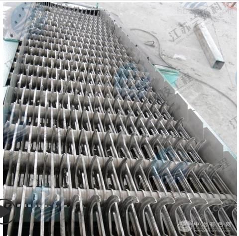 4、耙齿链是由若干组不锈钢制成的特殊形耙齿,按一定的排列次序装配在耙齿轴上形成封闭式耙齿链,其下部安装在进水渠水体中。当传动系统带动链轮作匀速定向旋转时,整个耙齿链便自上而下运动,并携带固体杂物从液体中分离出来,流体则通过耙齿的栅隙流过去,整个工作状态连续进行。