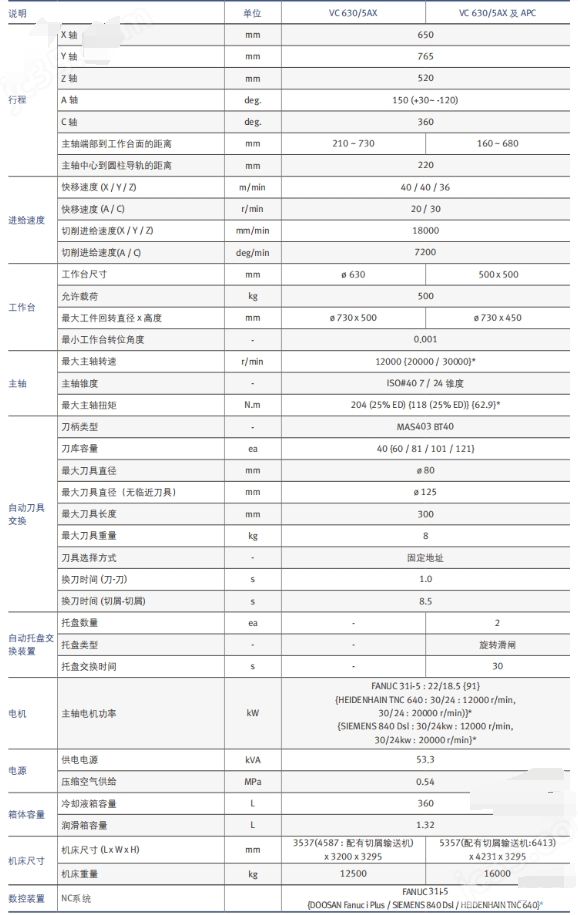VC630/5AX立式加工中心是配备高刚性回转工作台和高精密主轴的五轴联动加工中心,主要针对复杂及多轮廓金属工件的加工提供高精高效加工。