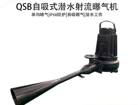 通过潜水泵产生的水流经过喷嘴形成高速水流,在喷嘴周围形成负压吸入空气,经混合室与水流混合,在喇叭形的扩散管内产生水气混合流,高速喷射而出,夹带许多气泡的水流在较大面积和深度的水域内涡旋搅拌,完成曝气,并且其轴功率不随潜没深度的变化而变化,进气量可以调节。