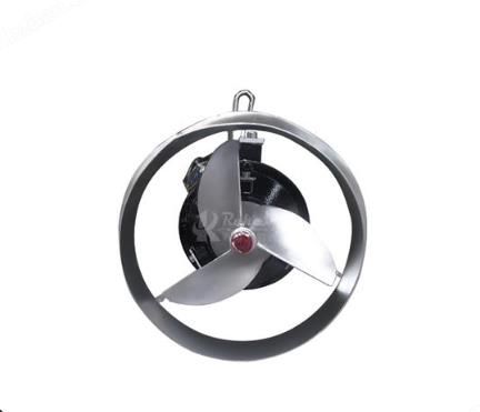 循环式潜水低速推流器专用潜水电机采取过载、断相及防渗漏三重保护,确保设备在水下工作的安全性。减速箱选用合金材质硬齿面的圆柱斜齿齿轮传动,具有承载能力大,体积小特点。主机各连接处均采取了端面和径向的密封,输出轴处选用碳化钨或碳化硅机械密封,确保可靠的密封性。推流器的叶轮,船舶螺旋桨水力推进理论,由计算机进行优化设计;两叶高推力、自洁型叶轮采用高强度耐腐蚀玻璃钢整体加工成型,重量轻、强度好,可在一定的输入功率条件下,获得水流推力。