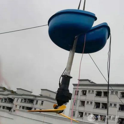 3、动力为潜水电机,且与搅拌机同轴,应用时潜入液下工作,不仅冷却条件好,适用深度范围广,而且不会产生噪声等二次污染;采用机电一体化结构,可以减少机械损耗,提高机组效率;