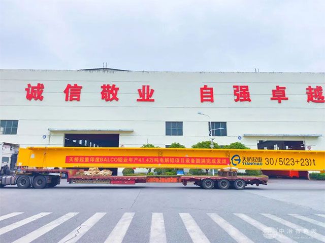 电解铝技术装备成功登陆印度市场!天桥起重承接的印度BALCO铝业年产41.4万吨电解铝项目全套设备已按期完成发运,创造了中国电解铝技术与装备出口印度的新纪录。