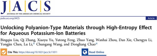 【原文链接】Unlocking Polyanion-Type Materials through High-Entropy Effect for Aqueous Potassium-Ion Batteries, J. Am. Chem. Soc. 2025, 10.1021/jacs.5c11011https://doi.org/10.1021/jacs.5c11011
