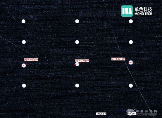 单色科技案例:钨片18μm无锥钻孔