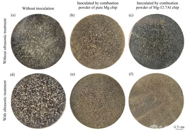 铝合金领域,也可利用氧化物夹杂诱发晶粒形核。挖掘氧化物夹杂在镁合金中的有益化利用,可为镁合金组织细化提供新的思路。实际生产过程中,镁熔体表面与空气接触发生氧化甚至燃烧,在扒渣或搅拌过程中进入镁熔体内部,而关于燃烧氧化夹杂产物对镁合金组织有益化利用的研究鲜见报道。本文提出通过镁屑燃烧的方式获得氧化夹杂,通过外加方式对镁熔体进行孕育处理,探究燃烧氧化夹杂对镁合金晶粒组织的影响规律,并揭示影响机制。