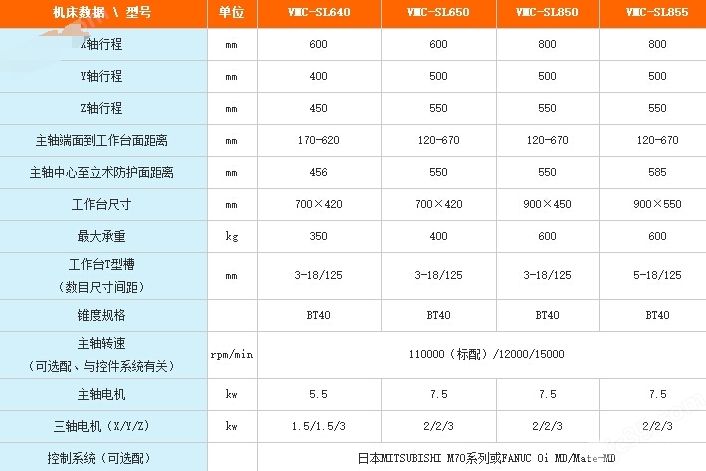 仕兴鸿精机VMC-SL850高速加工中心机床参数: