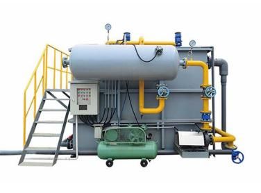 气浮澄清器是一种新型污水气浮净化设备,能有效分离污水中的悬浮物、重质颗粒。具有动力消耗低、处理效率高、易维护、安装简便无土建等优点,是目前高效的气浮类设备之一。待处理污水,经污水泵提升至气浮机进水仓内,和溶气泵的溶汽水混合后,在释放区域内形成大量微细气泡,附着在悬浮物颗粒上,使絮状物上浮到水面,由刮渣板刮至排渣口后排出;重质颗粒物经斜板沉淀区,沉降到设备底部的集泥斗,通过管道外排至污泥池中,进行后续处理;澄清后的净化水由设备中心管排出机外。