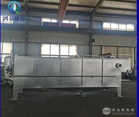 不锈钢溶气气浮机的工作原理基于气浮技术,通过溶气系统将空气溶解在水中,形成过饱和的溶气水。当溶气水通过释放器进入气浮池时,由于压力降低,溶气水中的空气迅速以微小气泡的形式释放出来,这些气泡直径通常在20-100微米之间。在气浮池中,污水与溶气水充分混合,污水中的悬浮颗粒、胶体物质等杂质与微小气泡相互吸附,形成比重小于水的气浮体,这些气浮体在浮力的作用下上浮至水面,形成浮渣层,而处理后的清水则从气浮池底部排出。