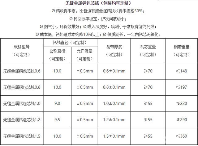金属无缝钙线的产品优势