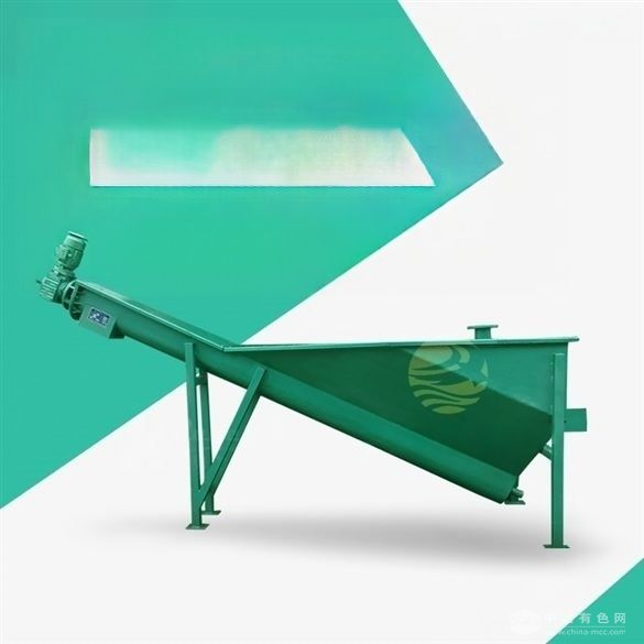 全自动螺旋式砂水分离器一般安装倾角在20-30度之间,砂水混合液从进水管进入本设备,混合液通过分离机上部的聚集器,在水流的作用下,使混合液中的砂粒与有机物进行分离,砂、水进入集砂槽中,比重较大的颗粒(如砂粒)由于自重而下降沉积于螺旋槽底部,在螺旋叶片的推动下,物料沿斜置的U型槽底部提升,离开液面后,继续上移一段距离,砂粒中的水分逐渐在螺旋槽中的间隙中流回水槽,砂粒也逐渐干化到出料口处,依靠自重落入其它输送装置。上清液则不断的从排水堰溢出管道流出,有机物在水流旋涡的作用下,则从聚集器的上顶流出,通过管道回流至污水井中,从而达到砂水分离的目的。