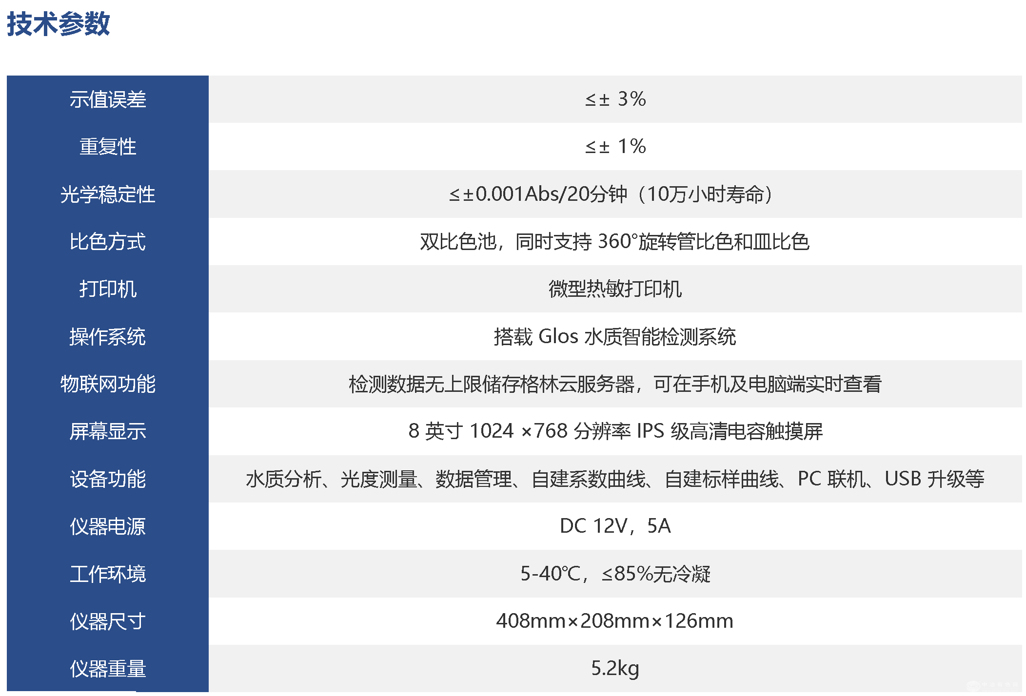 示值误差:COD≤50mg/L,±4mg/L;COD>50mg/L,误差≤±3%