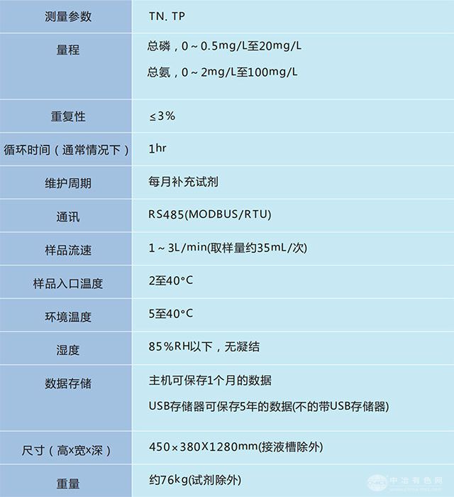 总磷:(符合国标GB11893-89 ):过硫酸盐做氧化剂,在120°C条件下加热消解30 min , 将磷化物转化成磷酸根离子,钼蓝吸光光度法测量总磷含量。(测量波长:700 nm )总氮:(符合标准HJ636-2012): 过硫酸盐做氧化剂,在120°C条件下加热消解30 min , 将含氮化物转化成硝酸根离子,样品溶液的pH调节为2-3;紫外光吸光光度法检测硝酸盐的吸光度。
