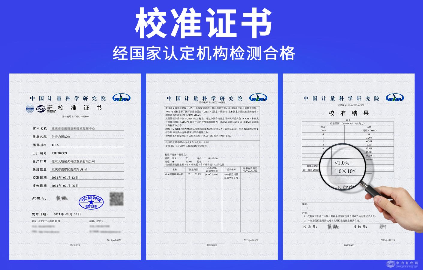 TC-A全自动附着力测试仪,由北京天地星火科技发展有限公司【星火牌】研制、生产,可测量金属、混凝土、木材、塑料等刚性基体表面涂层的附着力。经国家认定机构检测合格。该仪器的工作原理是利用液压系统使被测基体表面一定直径的涂层脱离来测量涂层的附着力,测试仪的多功能触摸液晶显示屏显示附着力的检测过程,以 MPa 或 kN 或 Psi 为单位显示。该产品依据国际及中国相关标准设计制造,技术可靠,性能稳定。 功能特点:精度≤±1%(满量程);电动加载;拉拔速率可调节;拉拔时间可设置;3种检测单位(MPa 、 kN 、 Psi);中英文可任意切换,符合国标,接轨国际,可出口。